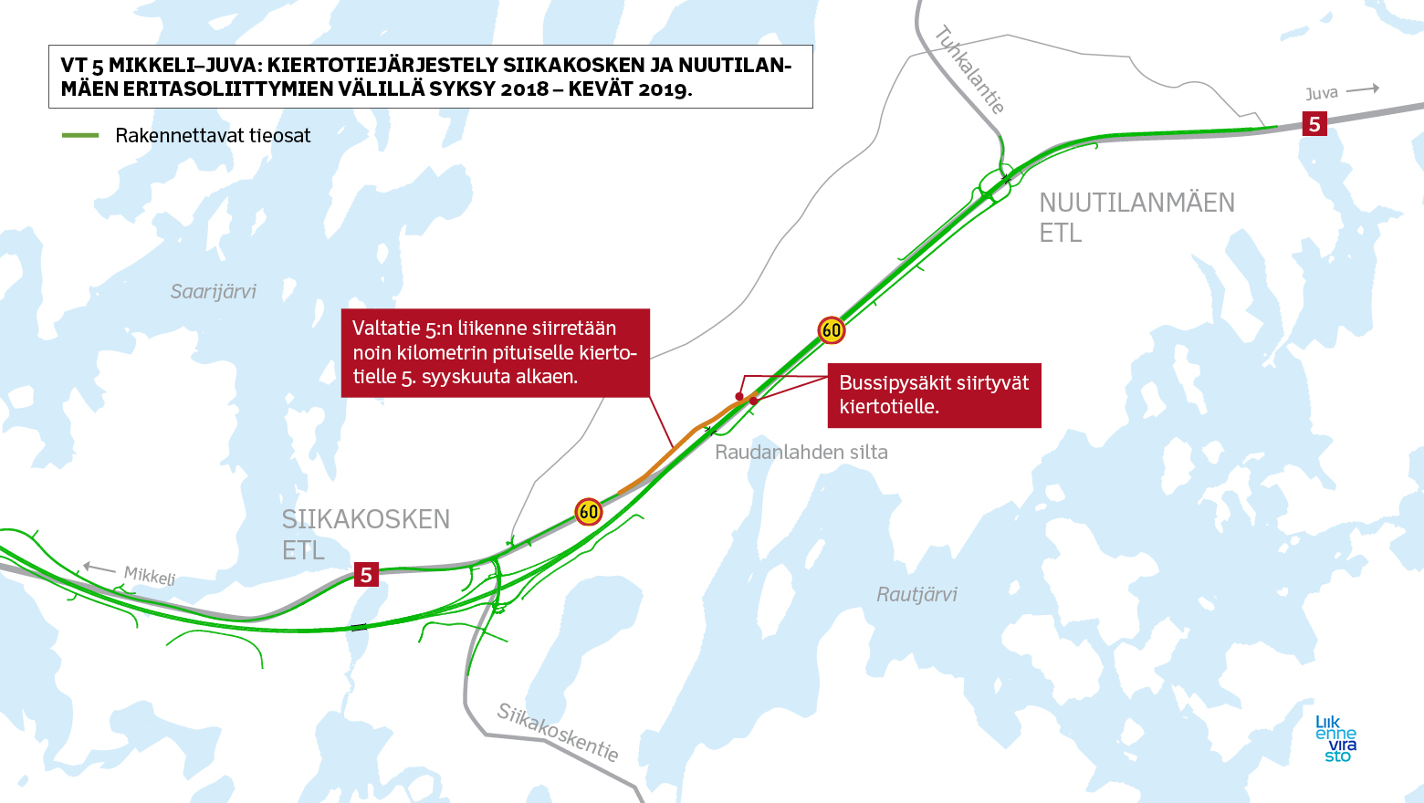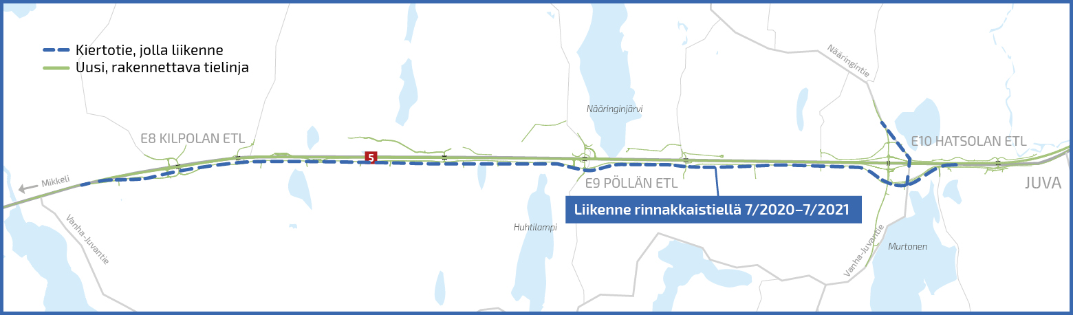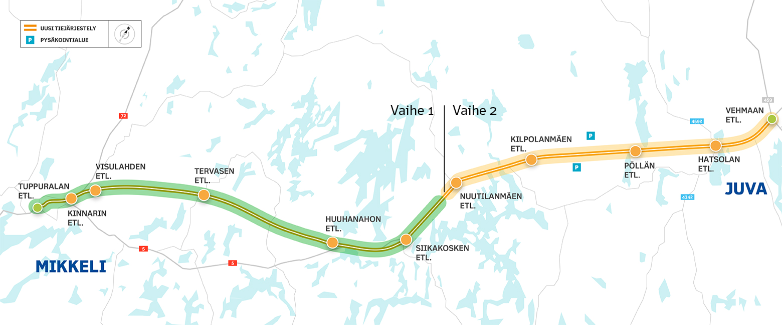 Liikennevirasto hyväksyi 31 10 2014 tiesuunnitelman valtatie 5 n parantamisesta mikkelin ja juvan välillä. 5 tien linjaus mikkeli juva kartta näin parannetaan valtatie 5 n mikkeli juva väliä uusi suomi valtatie 5 mikkeli juva ely keskus destia aloittaa valtatie 5 n paranta. Vt 5 mikkeli juva otetaan liikenteelle vaiheittain vuosina 2020 2021 ja lopullisesti tie on valmis kesällä 2022.